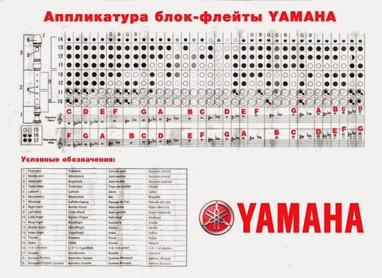 Апплікатура блокфлейт Ямаха в ключах "С" і "F".