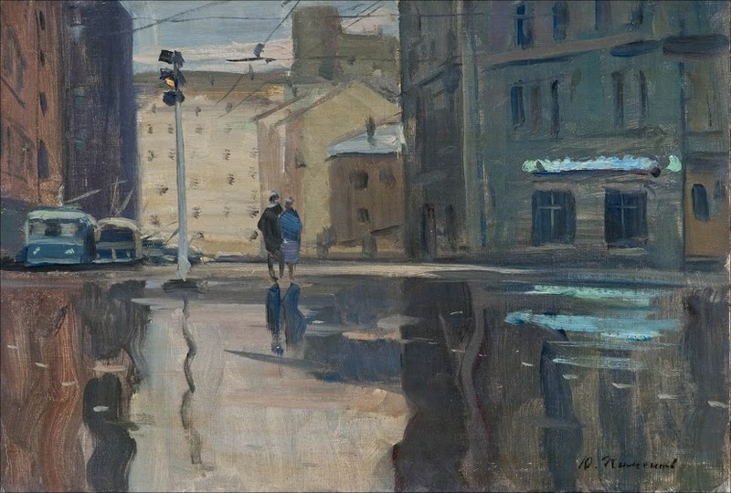 Одним з учнів Коровіна і Сєрова, перейняли у них експресивний мазок, яскраву палітру і етюдну манеру письма, став Олександр Михайлович Герасимов. Розквіт творчості художника припав на час революції, що не змогло не відбитися в сюжетах його картин. Незважаючи на те що Герасимов віддав свою кисть на службу партії і прославився завдяки видатним портретів Леніна і Сталіна, він продовжував працювати над імпресіоністичними пейзажами, близькими його душі. Робота Олександра Михайловича «Після дощу» відкриває нам художника як майстра передачі повітря і світла на картині, чому Герасимов зобов'язаний впливу своїх іменитих наставників.
